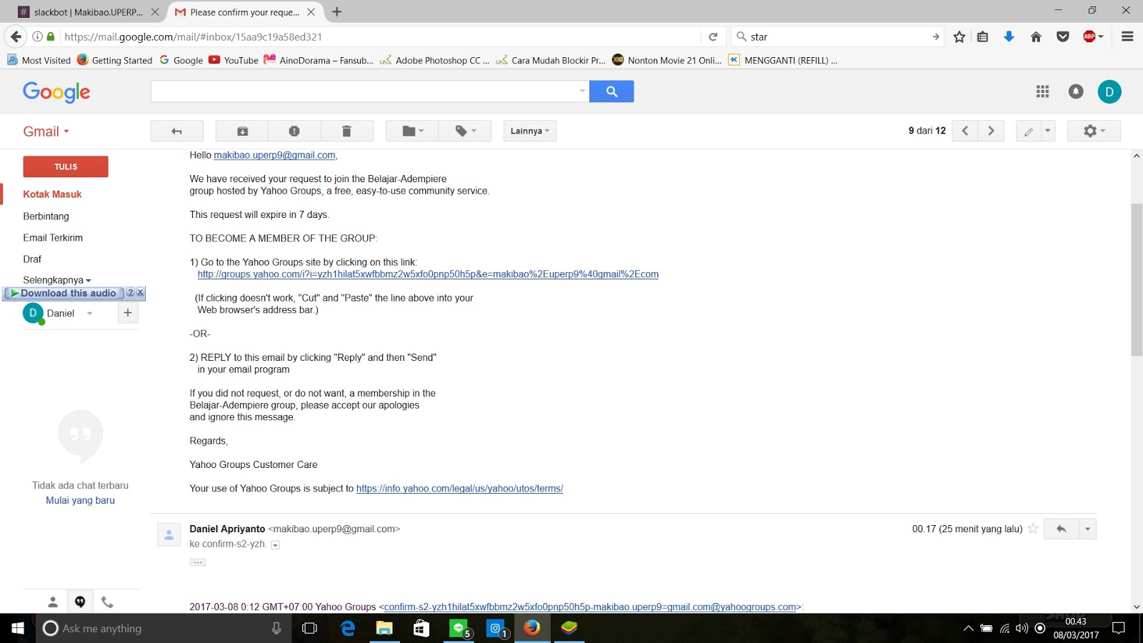 - Bergabung dengan Mailing List UPERP9 Belajar Adempiere OpenERP/Odoo.