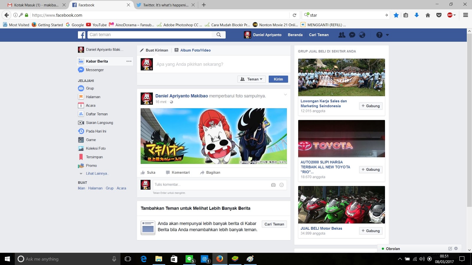 - Membuat E-mail Account, Blogger dan Twitter dengan Account kartun.